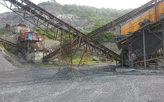 該條石子加工生產(chǎn)線屬于露天生產(chǎn)作業(yè),但是并無(wú)在現(xiàn)場(chǎng)看到揚(yáng)塵、石粉亂飛的現(xiàn)場(chǎng),生產(chǎn)線生產(chǎn)物料度優(yōu)、粒度呈立方體,石粉含量少。