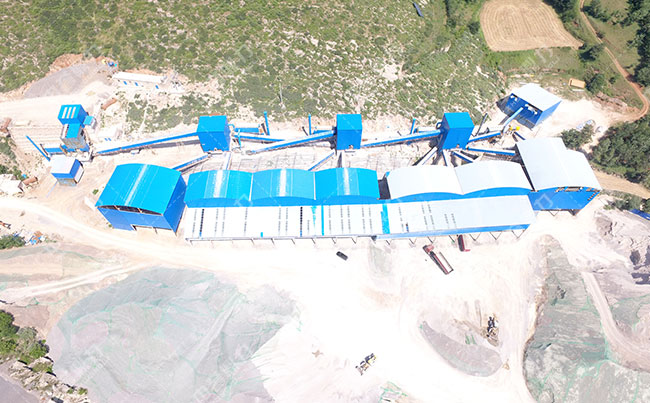 該年產(chǎn)300萬噸砂石骨料生產(chǎn)線是中譽(yù)鼎力設(shè)計(jì)安裝承建,采用了重錘破碎機(jī)進(jìn)行破碎,破碎后的石料通過圓振動(dòng)篩進(jìn)行篩選分級(jí),得到多種規(guī)格的建筑石料,通過皮帶機(jī)送入相應(yīng)的料倉(cāng)中。整個(gè)項(xiàng)目采用了封閉式加工,降低了粉塵揚(yáng)塵污染,綠色環(huán)保。
