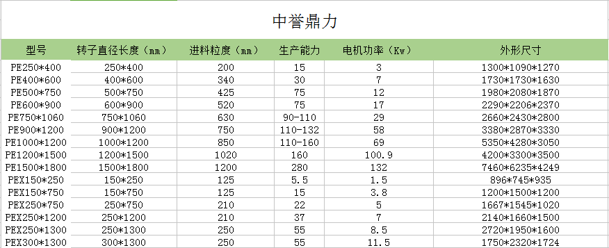 中譽鼎力顎式破碎機(jī)技術(shù)參數(shù):