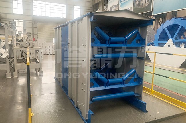 皮帶防跑偏,箱體側(cè)壁約束皮帶橫向位移,減少跑偏故障?癸L(fēng)載與振動(dòng),封閉結(jié)構(gòu)增強(qiáng)整體剛性,適合長(zhǎng)距離、跨場(chǎng)地輸送,如港口棧橋的物料輸送。